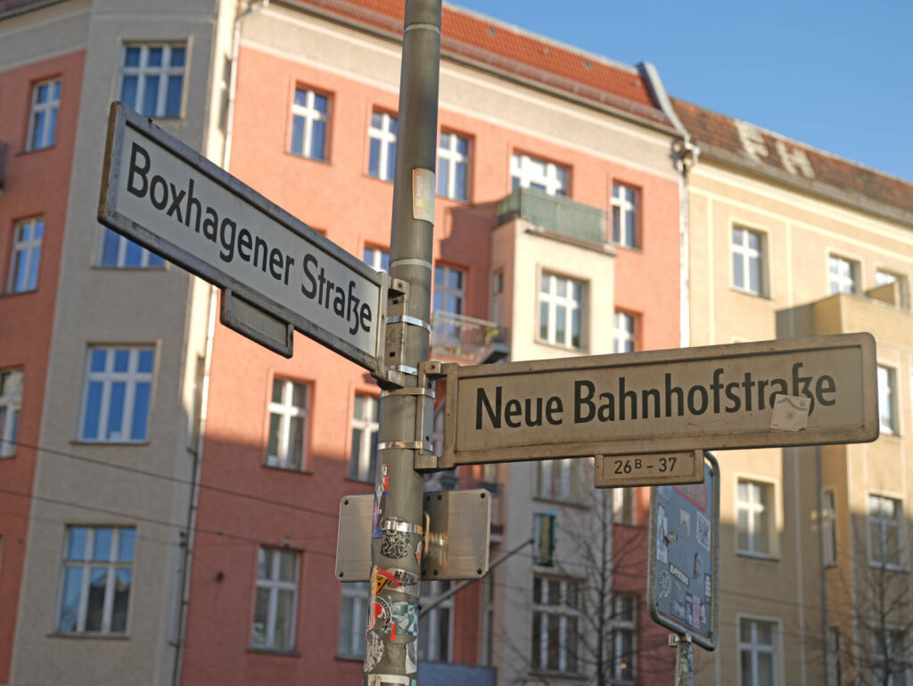 Wenn Sie mit öffentlichen Verkehrsmitteln anreisen, haben drei Möglichkeiten: (1) Sie nehmen die S-Bahn bis zur Haltestelle „Ostkreuz“. (2) Sie nehmen die Tram 21 bis zur Haltestelle „Neue Bahnhofstraße“. (3) Sie nehmen den Bus 240 bis zur Haltestelle „Neue Bahnhofstraße“. In allen drei Fällen sind es dann nur noch 1 Minute Fußweg bis zu meinem Büro.